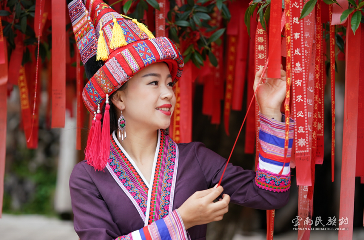 彝族在云南境內約471萬人,是省內人口最多、分布最廣的少數民族,主要聚居在金沙江、元江流域和哀牢山、無量山腹地。彝族是一個能歌善舞的民族,民間打歌、跳樂之風盛行,大三弦、跌腳舞久負盛名。火把節是彝族最具特色的民族節日。彝族村占地50余畝,三虎浮雕墻與虎頭內祖師形象表現了彝族虎鷹文化。太陽歷廣場圖騰柱上有太陽、虎、火和八卦圖形象,周圍環繞著10個朝向不同的月球造型,外圓周有12生肖石雕。依山而建的“...